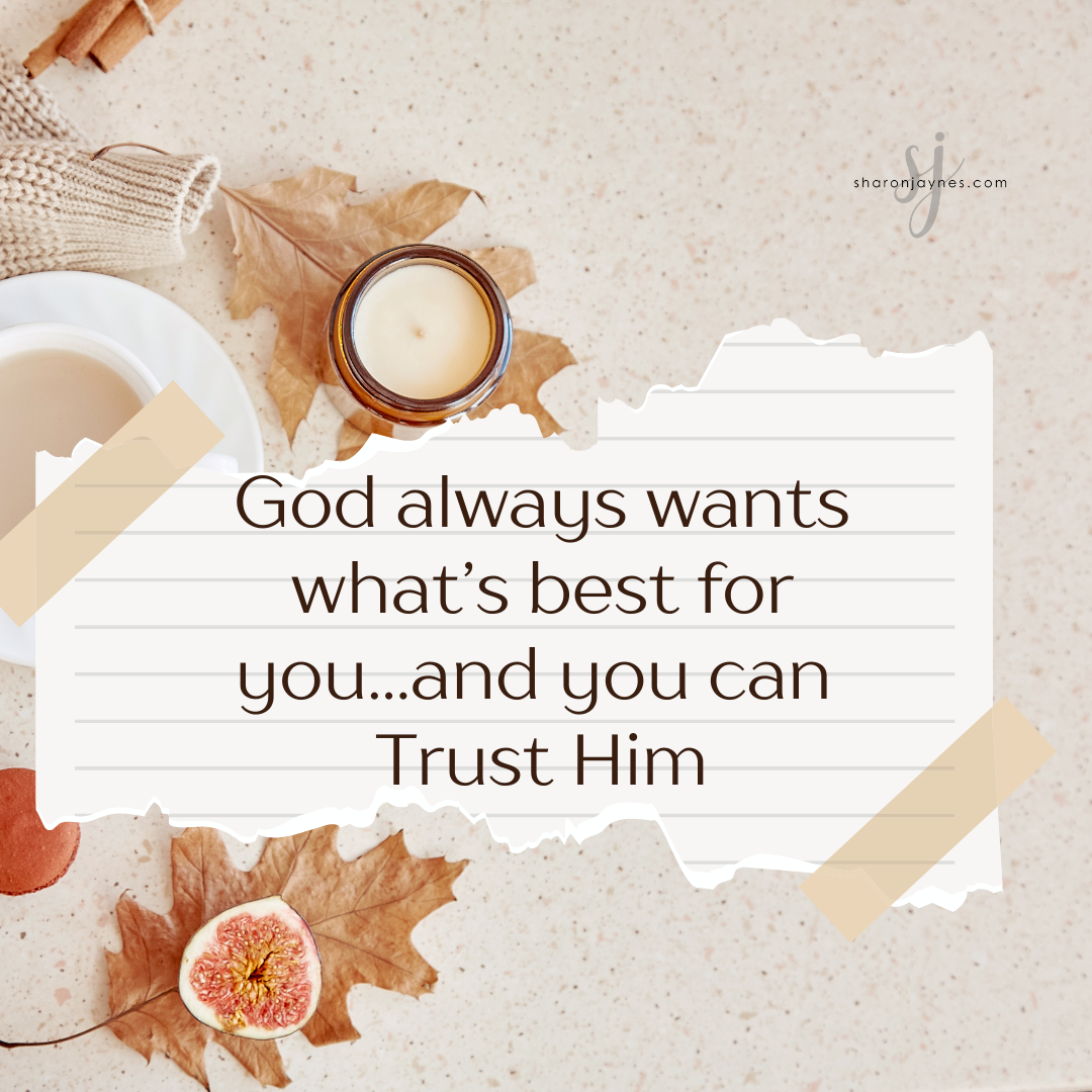 Heavenly Father, I am so glad I can trust You with my hopes, my dreams, my fears, and my years. I know that You have a good plan for me. Even when I am disappointed and heartbroken, help me trust that Your ways are perfect. In Jesus’ Name, Amen.